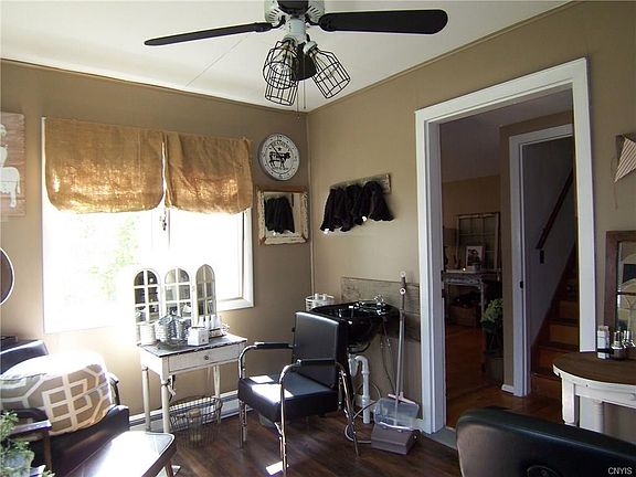 Adorable Cape Cod is nestled on a large lot of .78 +/- acre (117' x 289'). Front porch, living room with hardwood floor, formal dining room with hardwood floors, kitchen has painted cabinets and new 30 year waterproof floor, newer stove and refrigerator too! Full renovated bath down with a bedroom, upstairs has a large bedroom that could be converted to two separate rooms, full basement, 2 stall garage, shed. Large fenced yard too! New 50 gallon hot water heater. Open concept kitchen/dining room.