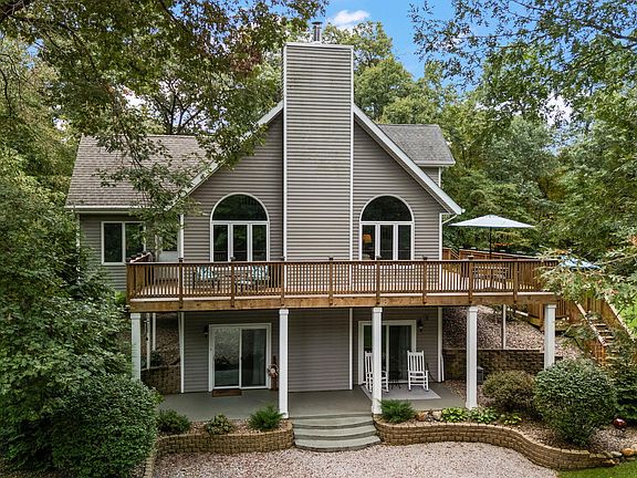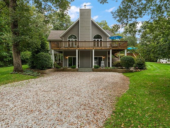 Welcome to this exceptional two-story home that also includes a walk out basement. Nestled on an expansive 8-acre lot, this beautiful property offers the perfect combination of privacy, natural beauty, and modern conveniences. With a private 1/4-mile-long driveway leading to the house, you'll enjoy the peace and serenity that comes with being surrounded by mature trees, gorgeous woods, and breathtaking views. This home features a spacious 3,246 sq ft layout with 3 bedrooms and 3 bathrooms. Boasting a partially finished walkout basement, a newly added dining area, and an abundance of high-end finishes, this property blends rustic charm with modern living to create a truly unique home. As you step into the home, you'll immediately appreciate the open-concept layout that fosters a bright and airy feel. The living room, with 21' ceilings, exposed beams and a striking floor-to-ceiling wood-burning fireplace, is designed to make a statement while offering a cozy place to relax. The open layout makes it easy to flow between the kitchen, dining area, and living room, which is perfect for both everyday living and entertaining. The kitchen features granite countertops, stainless steel appliances, and plenty of cabinet space, creating a functional cooking area. The home offers three generously sized bedrooms, each providing ample closet space and comfort. The primary suite is HUGE, complete with his and hers closets and a private en suite bathroom offering double sink vanity, shower and soaking tub. The great room in the basement is perfect for a variety of uses, a half bath adds convenience, while the large storage area ensures you have space for anything & everything. Recent updates to the home include: 4 car detached heated garage 26'x40, utility shed 12'x20', a new dining area addition (2019), AC unit (2024), Furnace (2023), Leaf Gutter Guards, Sprinkler System (2023). Home is located in the Kankakee Valley School District and offers easy access to town and I65.