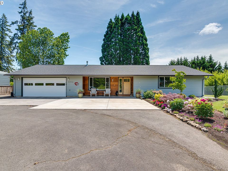Located between Warren & St Helens! Picturesque meticulously maintained home on .70-acre oasis is move in ready! This completely updated ultra-modern ranch has 1670 sq ft with 3 bedrooms & 2 baths & wood floors in the modern kitchen, dining room & family room that opens to the spacious back yard with a tool shed, raised garden beds & 20x16 covered patio. Huge master bedroom with walk in closet & bathroom. View the 45x30 contractor dream shop with a paint room & dry room. RV and boat parking.