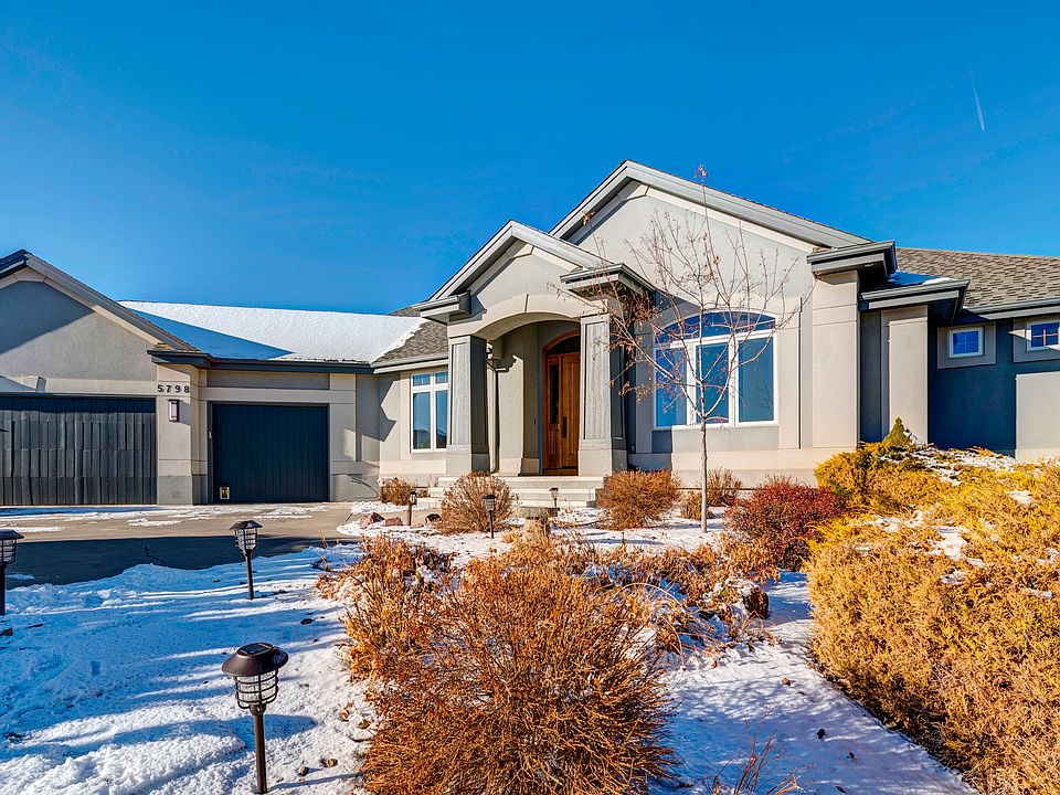 Welcome to this masterfully crafted ranch style home in the desired Highland Hills neighborhood on a one acre exceptionally landscaped lot! This stunning five bed, four and a half bath home boasts majestic mountain views you will fall in love with. Handsome hardwood floors welcome you into the foyer and continue throughout the living space. The family room features a cozy double sided fireplace that it shares with the dining room. Vaulted ceilings and grand windows showcase the breathtaking views. Envision yourself in the gourmet kitchen featuring beautiful slab granite counters, a vast island, breakfast bar, full tile backsplash, stainless steel appliances, a gas range, commercial grade size refrigerator, and a skylight. The bright sunroom grants access to one of the two covered decks. Additionally, the main floor is host to an inviting office and two spacious bedrooms including the luxurious master suite with trey ceilings, a private covered deck, and an elegant five piece master bath with two spacious walk-in closets. Downstairs, the fully finished walk-out with hardwood floors expands the living space with a large rec room, gorgeous wet bar, library, and three more bedrooms. The home features two high efficiency furnaces, two air conditioners, a central vacuum system, and hot water on-demand. Call us now for more information!