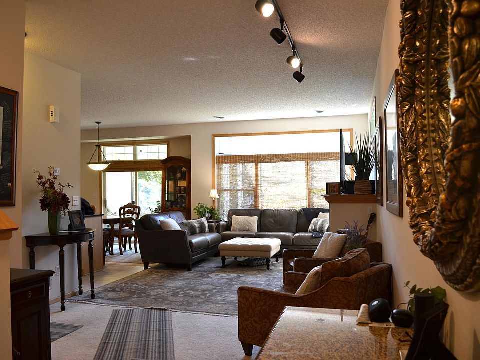 The location is exceptional: Walk to the library (when rebuilt), Grocery store, Walgreens, shops and restaurants. Two blocks to the Mound transit center buses. And a paved trail to the Dakota Rail Trail is right across the lawn. This end townhome in a park-like setting is one of the few backing to a natural area and pond. Your patio and windows open to nature. The frogs sing, turtles sun and ducks drop in now and then. The open flowing main floor plan with 9 foot ceilings and a patio door to your covered patio, transom windows on the end unit wall bring extra light. A living room gas fireplace shares its glow with kitchen and dining room for cozy winter evenings. The kitchen has tall uppers, Black and gold flecked granite counters, ceramic floors, full stainless appliances (french door refrig with freezer below is 2 years old). Upper level - there is not another one like this custom designed townhome in the complex. 3 bedrooms two with en suite baths. Laundry by the bedrooms. And an unusually large volume of storage space. Your utilities are high efficiency. Windows are thermal. Water / sewer, trash, snow removal landscape care and outside maintenance are covered in the monthlies. A/C NEW in 2023, NEW FURNACE in 2025. There is a playground at the northwest corner of the complex. And a closed loop street plan in this small development makes for low trafffic in a quiet convenient community.