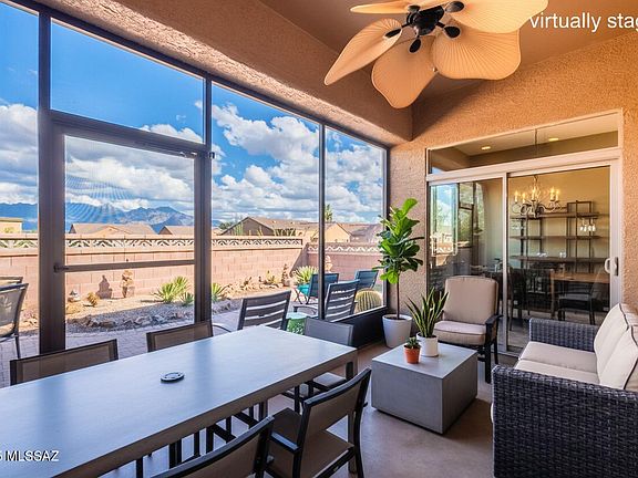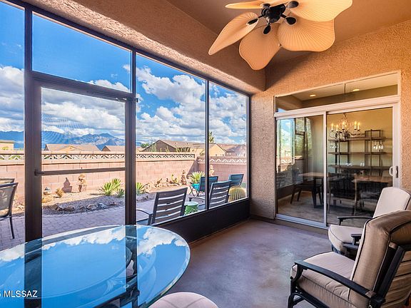 Escape to your own private desert sanctuary where contemporary design meets the beauty of the beautiful Santa Rita Mountains! This thoughtfully designed home offers the perfect blend of modern comfort and low-maintenance living, allowing you to focus on what truly matters - enjoying life under the endless desert sky. The heart of this home is the great room, where windows frame spectacular mountain vistas like living artwork. Gather around the cozy fireplace as the sun sets behind the peaks.The kitchen is the perfect size for cooking and entertaining with a spacious dining room adjacent and a bar for overflow seating Despite its intimate scale, this clever layout maximizes every square foot with two comfortable bedrooms plus a versatile den - perfect for guests, a media room, or a second office. Step outside to discover your personal resort-style retreat. The screened Arizona room becomes your favorite refuge during breezy desert evenings, and and a paved back patio is framed by mountain views and extends your outdoor living space. This outdoor living area was created for al fresco dining and entertaining under the stars. Spend your mornings watching the mountains awaken and your evenings under the stars, knowing that your low-maintenance sanctuary handles the details so you can focus on making memories. This home was designed for living, not maintaining, and is your gateway to the desert lifestyle you've been dreaming of