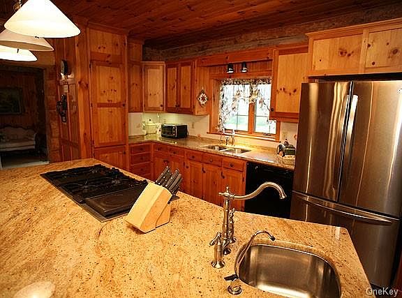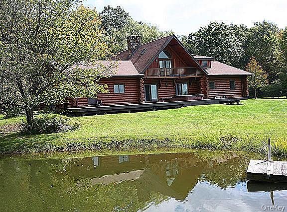 Looking to escape to the country? This is safe haven is country living at its best, featuring a unique log home privately-set on 21+ acres. Tree-lined driveway leads to the gorgeous home overlooking lovely pond, garden area & orchard. Watch sunsets from the west-facing back deck, see deer & bird life in your backyard.. Kitchen has granite counters w/island & cooktop, pantry & stackable WD. Open floor plan overlooks the LR and family rooms. Gorgeous bluestone fireplace splits the LR, Fam room & den. Massive log support is jaw-dropping! 2 BR/2 full bath on main. Up: master suite w/balcony. Enormous basement, great storage or overflow living. Hot tub on deck! Generator. Central AC, 2car garage. 2 huge outbuildings. Close to Callicoon, NY, the Delaware River, Honesdale, PA.