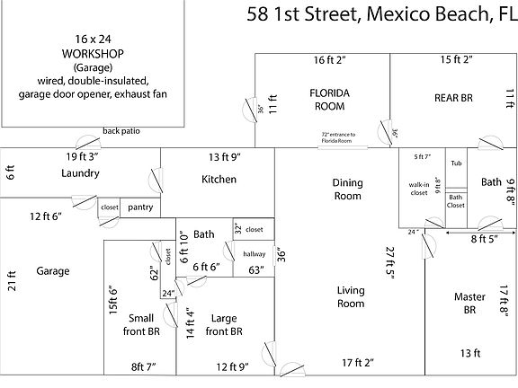 Wood flooring throughout the house, the "Florida Room", 2 additional bedrooms, and kitchen renovation were all added since original layout. 2 Full baths. 4 Bedrooms. Incredible storage areas all through the house (closets/pantries). New Peaden AC/Furnace in 2017. New roof in 2019. There is a very large porch that runs along the front of the house. With the large lot, workshop and sheds, and storage throughout the house - this is a unique property here in Mexico Beach!