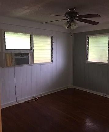 Duplex located on mauka side of Kam Hwy at Velzeyland; ocean view from lanai area; mountain view from bdrms; 1 stall in shared carport; stove/fridge; washer/dryer (not shared); storage area; hardwood flooring; Window AC Unit in large berm; ceiling fans in bdrms & living room; bathroom recently renovated, yard with kids playground. Close to public transportation, Kahuku Motorcross & North Shore's Bike Path; walking distance to the beach; water & yard maint included.