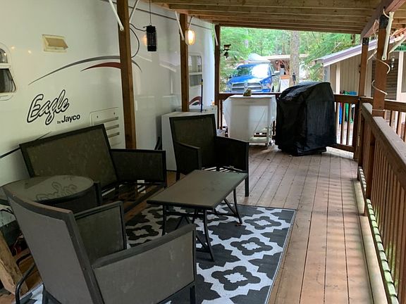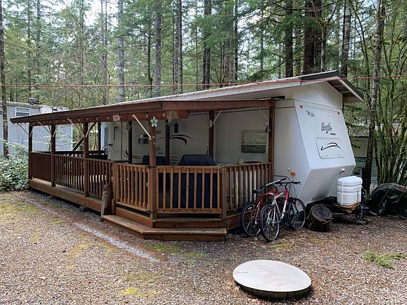 Very unique lot in division 4 in the Glen at Maple Falls. Beautiful trailer with huge private deck. Insulated storage shed that allows for extra storage. Private deeded campsite with lots of space. Lots of sleeping spaces in the buildings on this lot. Come see this property with 24 hr security. For more information, or to schedule a private showing, text ONLINE to 59559