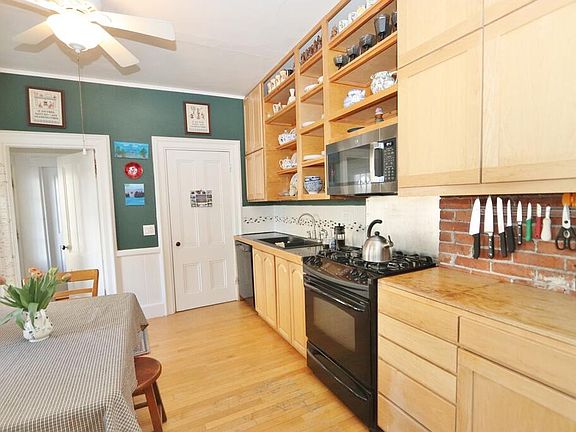 Enjoy this grand, sunlit three bedroom, two bath home and let the two rental units pay your mortgage. The high ceilings, sweeping front staircase, hardwood floors, kitchen pantry, butlers pantry and large windows invite you into the gracious life of the early 1900's. All three units have newer gas boilers, many of the windows have been replaced, the main home has an airy floor-plan and one room opens to the next with french doors. The two rents; units ave a nice rental history with each tennant paying their own utilities in addition to the rent. This home offers a nice investment opportunity.