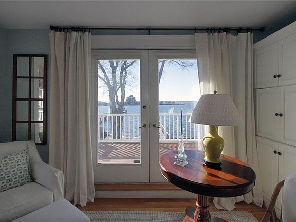 A custom waterfront condominium with private pier and beach on Narragansett Bay. Views of sunsets, sailboats, the Pell Bridge and lighthouses: a perfect summer getaway. Walk to all amenities, stroll historic neighborhoods, search for sea glass on the beach, watch fireworks on the 4th from the deck. Granite & stainless kitchen, one bedroom, tile and marble bath, hardwood floors, washer/dryer, on-site parking. A gem. Available for July and August thru Labor Day.