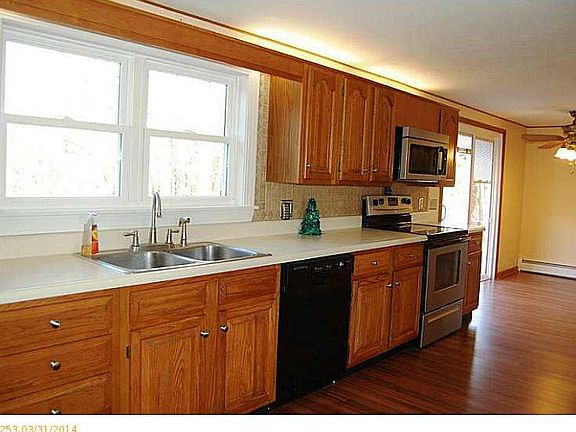 Well maintained and immaculate throughout this lovely Split level home sits among a small neighborhood in China. Built in 1970 and remodeled with new windows, doors, siding, roof, deck and entry porch in 2012. This 2448 SF home has 10 rooms; 4 bedrooms and 2 baths. It has lots of fresh paint in a lively contemporary palette, crown moldings, solid paneled doors, laminate and tiled floors. It is a long and wide home originally built for 2 families. It has gracefully evolved over the years into a single family home with a huge kitchen and dining room at the center of the home, lovely matched living rooms on either side of the center foyer and 2 bedrooms plus 1 full bath on either end that are mirror images. The kitchen is a fabulous big room with very bountiful oak cabinets and incredible generous counter top. It has a big double stainless sink at center and a beautiful tiled back splash encircles the prep areas, very pretty. This kitchen is fully appliance with an Amana side by side refrigerator, Whirlpool glass topped stove and a Kitchenaid dishwasher. The dining room is spacious and bright with sliding doors that open to a huge deck looking out over the back yard. The bedrooms are generous with good closets and there are 2 closets in the hallway on either end too. Both baths have tiled floors and have been refreshed with dark vanities, wide rectangular sink tops, hardware and a tiled back wall with horizontal inset of glass tiles. The lower level of this home offers more incredible living space; fully tiled throughout with a wonderful family room with woodstove hook-up at center, this space branches out to a laundry room, study and a huge walk in closet for extra storage. A 24x38 insulated garage space under the further end of the house is a direct walk out from the lower foyer. It is heated with a high efficiency Buderus boiler (2008). Sited on a 1.21 acre lot, which is the full area of the cul de sac's circle, this home has lovely mostly level back yard with tree lined edges assuring good play, garden space and privacy. Central to Augusta, Belfast or Waterville, this home sits 2 miles +/- from Route 3 and minutes to the public boat landing on China Lake. A very nice property, it will be a pleasure to show.