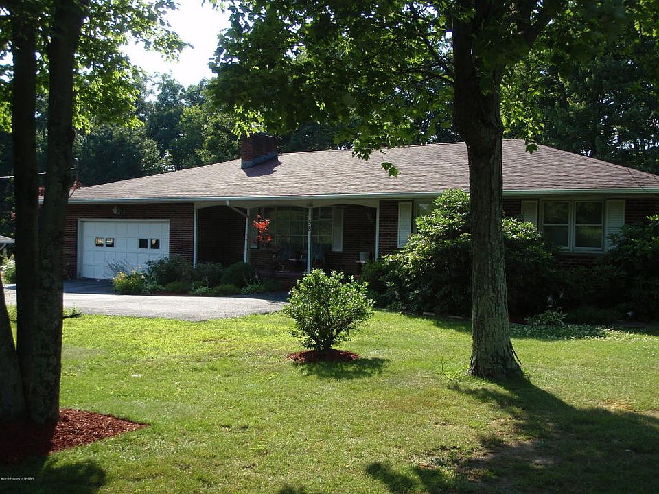Nice brick ranch w/central air, 3 bedrooms, 2 baths. Kitchen features Granite countertops, island and more. Fireplace in living room. Enclosed rear porch w/knotty pine and pellet stove. Partially finished basement with wet bar. Additional detached garage, and storage within the fenced in yard.