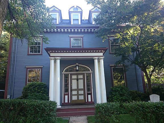 Pill Hill Historic Dist. "The Roland Hayes House" Arch. J.E.Chandler. Unique living room with grand staircase, columns, gorgeous wood floors and built-ins. Step-up DR alcove w/fireplace. Sunny eat-in chef's kitchen with custom cab./Thermodore/Wolfe/granite counters with direct access to deck, bluestone patio & lovely level yard. Large family room w/ frplc. opens to sun porch. 2nd floor has 4 corner BRs, hallway/MBR remodeled bath, one BR w/ remodeled en suite bath. Flexible use third flr. w/ BR, office, sitting area, bath and kitchenette. Two zone central AC and gas heating. Enjoy Olmsted Park and access to the Brook House pool. Close to T, village, and Med. area. New roof in 2018.