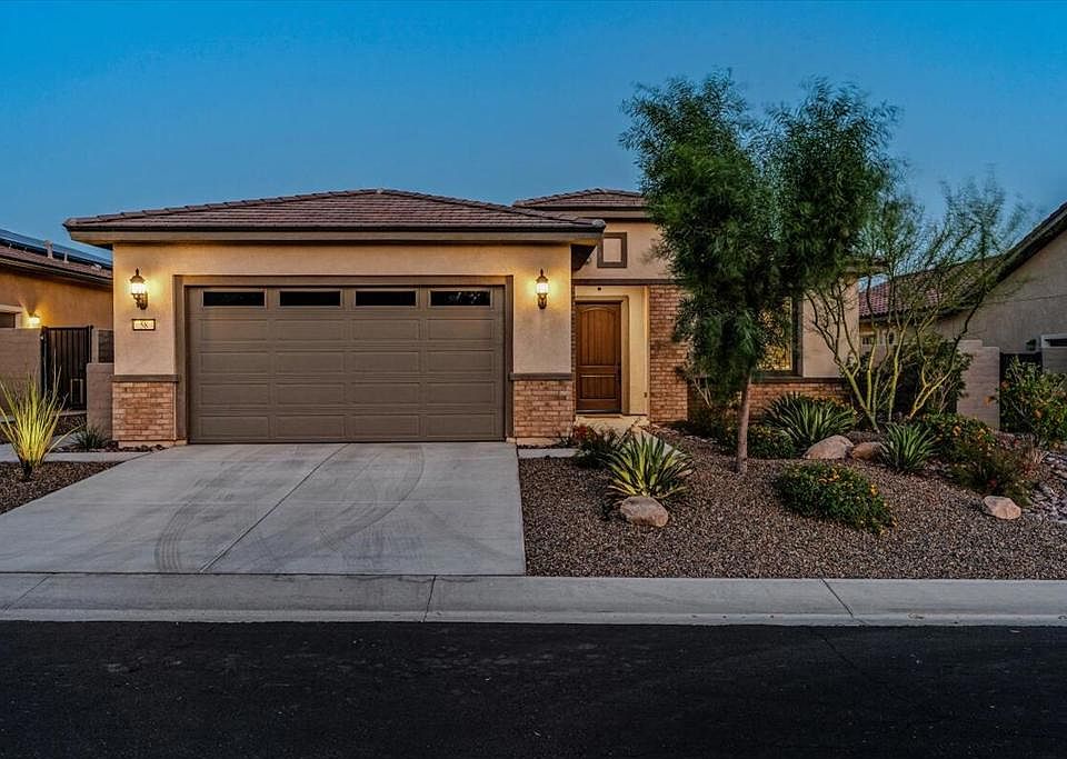 Upgrades! Upgrades! Upgrades! Phase 3, Plan 4 Prairie Sanctuary located in the prestigious 55+ community of Del Webb Rancho Mirage. Lovingly maintained, featuring some of the most requested upgrades starting with the extra wide 42'' front door and 4' expanded, air conditioned, epoxy floor garage with custom cabinetry, tray ceiling package in the entry & primary, solar tube lit entry hall, 12X24'' porcelain tile, Arch Package, recessed lighting, ceiling fans, whole house Wi-Fi booster, and Genta by Moen faucets. The chef's dream kitchen includes upgraded quartz counters, Executive Island, farmhouse sink, and top-of-the-line KitchenAid Stainless Steel Appliances and Bespoke refrigerator by Samsung. Under cabinet lighting, custom backsplash, and pendants over the island complete this dream space. The primary bath includes an upgraded roll-in shower, grab bars, vanity lighting, and large walk-in closet. This gorgeous home includes a whole house water conditioning system, silhouette roller shades throughout, power external zipper shade system for easy indoor/outdoor living, and an affordable leased Tesla Solar system for only $57.92/month all just 1/2 block away from the stunning Del Webb clubhouse with two pools, hot-tub, gym, pickleball courts, and so much more!