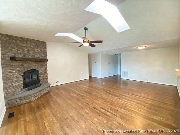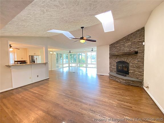 LAKE FRONT. Great 3 bedroom 2 bathroom home located on the main lake in CAROLINA LAKES. This home has over 1700 square feet and features a cul-de-sac lot, double car garage, large front porch, rear deck and boat dock and views of the lake. Inside this home you will find a great room w/ vaulted ceilings, skylights, hardwood floors and a corner fireplace. The hardwood flooring continues into the kitchen that has beautiful cabinets with a granite countertop, stove top and stainless steel appliances that includes a built in oven, refrigerator and dishwasher. The large sun room has tile floors, lots of windows, views of the lake and access to the rear deck. All bedrooms have hardwood floors and ceiling fans. The master suite has a walk in closet, access to the rear deck, tub and shower. Carolina Lakes is a Guarded/Gated POA community with lake access, beach and marina, community pool, tennis, basketball and pickle ball courts. Sand volley ball court, Frisby golf, Community Playgrounds events and more. Deed restrictions apply. PM: Sharon Pets considered with approval and non refundable pet fee.