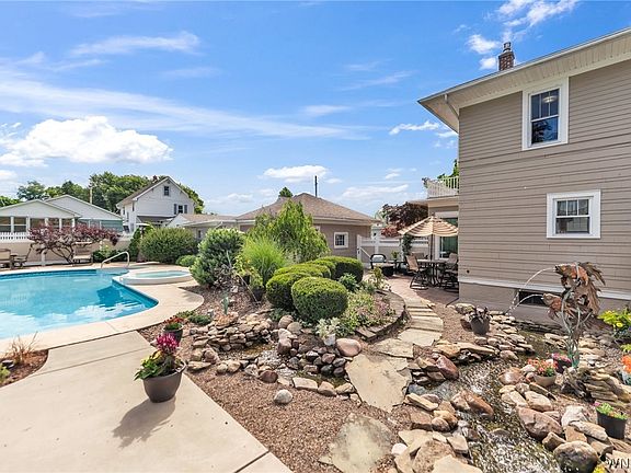 Come see the charisma of 58 Beverly!! This home gives some old charm through the many renovations mainly done in 2008, with updates including: windows, electrical, A/C, radiant heat in first floor master bedroom and bath, kitchen, bathrooms, hardwood floors throughout and much more. Roof 2022, hot water tank 2022, fenced yard 2021, professional landscaped with ponds. 5 beds, 2.5 baths, 2 car garage. Part of the garage is converted to a pool room with bathroom only used in summer. Enjoy summer entertaining or sitting on the patio listing to the water flowing in the two ponds then taking a swim in the inground pool. Showings start 6/18/2024 with Offers if any will be reviewed on 6/24/24 by 6pm. Gazebo and water spitters in the ponds are not included in the sale.