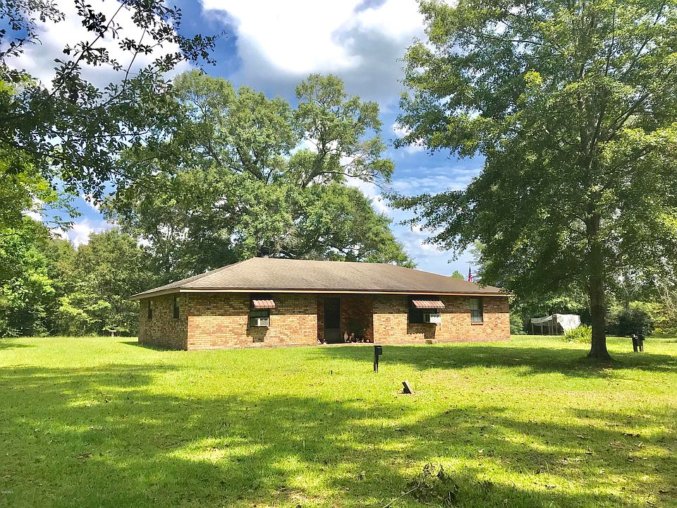Brick house on 6 very pretty acres. Home has open living room/kitchen area w/ high ceilings & wood burning fireplace. Sun room gives extra space for multi uses. Large laundry room/pantry. Storage shed on back of property & also comes with a bonus 600 sq. ft. one bed/one bath cottage w/ living room & kitchenette. Needs some TLC but lots of opportunity for a 2nd family home and/or rental income. There are also 6 RV hookups on front of property that were used for temporary housing after Katrina. Two additional septic tanks on site also. Large covered parking area out back w/ brick fireplace & deck.