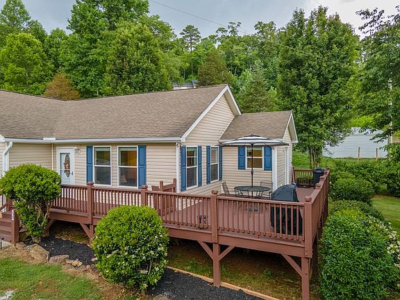 Well maintained single level home in a nice country community. This home is located on a large, level lot with room to play and enjoy the outdoors! Entertain outside on the wrap around deck and take in the beautiful Western North Carolina seasons. Two entries from the deck: main entry into the living room with a secondary into the mud/laundry room. Open floor plan with the living room opening to the dining room and kitchen. Spacious kitchen with eat in breakfast bar, lots of cabinets and counter space. Beautiful wood flooring throughout the living room and dining area. Bedrooms are down the hall. Nice size master with en-suite bathroom and walk in closet are to the right with 2nd and 3rd bedrooms to the left and guest bath straight ahead. Master bath has dual vanities, soaking tub and walk in shower. Outbuilding for additional storage. Circular driveway with plenty of parking. Frontier Internet.