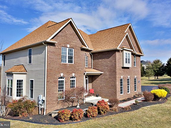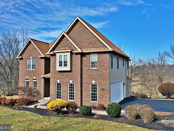 This beautiful, custom-built home in the highly sought after Eastland subdivision boasts over 3800 sq ft of finished space with tons of bells and whistles! On the main level, you'll enjoy a spacious sunken family room with warm propane fireplace, gourmet kitchen with granite countertops, tile backsplash, gas cooktop, and upgraded stainless steel appliances, formal living and dining rooms, wide crown molding, columns, and bamboo flooring throughout. The upper level features LVP flooring throughout, a luxurious primary suite with a walk-in closet, tray ceiling, and granite topped vanities and a huge recently updated shower in the bathroom, a second bedroom with attached bathroom, full laundry room, and much more! The mostly finished walk out basement includes additional living space, a full bathroom, and a large theater room, complete with movie projector, screen, and Bose surround sound system. Recent updates include a new HVAC system (18 SEER) and new water softener in 2022, new tankless water heater in 2019, and new roof, siding, gutters, and downspouts in 2018. Enjoy watching the deer and other local wildlife play in the stream in your own backyard while you stay cozy and warm in the newly constructed sunroom off the kitchen. Wash your dogs or yourself after a hot day of working in the yard in the convenient in-garage shower! This semi-rural community featuring sweeping mountain views, Evitts Run frontage, and a network of paved walking trails is just off US-340 for easy commuter access. Don't miss out on the opportunity to call this one "home". Schedule your showing today!
