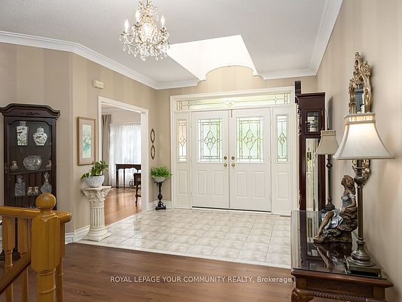 STUNNING CUSTOM-BUILT BUNGALOW on a cul-de-sac in the Exclusive Tall Trees Enclave, Pickering's Best Kept Secret. Steps from the Rouge Valley Nature trails, this immaculate Marshall built beauty boasts generous open living spaces with endless possibilites for various configurations suitable to your family. Every inch of this home has been thoughtfully crafted with Large Bay and Bow windows in principle rooms and with exceptional consideration for current and future uses; from additional bedrooms in the basement, home office space, recreation, games and loads of organized storage areas not to mention the envy of all DIYers and Craftsmen, a Huge Home Workshop its all right here!! From the elegant formal Living and Dining Rooms to the heartbeat of the Ginormous kitchen, this home built on a 138 deep lot, opens to the Patio and Professionally curated perennial garden where birds and wildlife share the heartbeat of the seasons. This winter, cozy up to the fire in family room while the family bustles around the kitchen. Soak in the Master/Primary Ensuite Jaccuzzi tub or lounge in the 24 x 13 Bedroom while looking out the Bay Window. On the fully finished Lower level many surprising opportunities await. Pool (table w/accessories included) in the Games area, drinks at the Wet bar or movies in the Entertainment area, with almost 2000 square feet of finished space, configure your exercise room, add additional bedrooms, or enlarge the home office, its all easy to do. EXTRA EXTRA EXTRA: 9 ceilings , crown molding, new hardwood floors, Kohler water conservation toilets, AC and Furnace (19), and a Double deep finished garage w/workbench. See Attachment for comprehensive list.