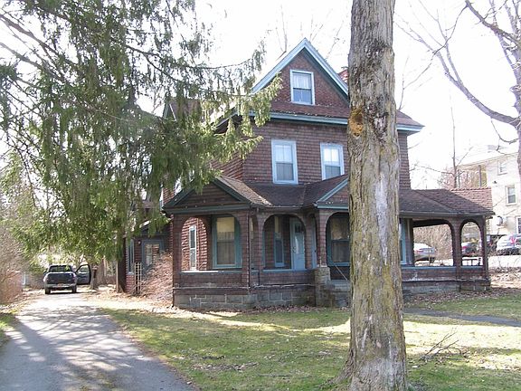GRAND STATELY HOME, MOSTLY ORIGINAL WOODWORK AND DECOR. Located in the heart of Hamilton Village and Colgate College.High ceilings, wood floors, LARGE eat in kitchen plus a formal dining room. Den with fireplace, open formal staircase, plus a back staircase off kitchen.There is a great semi- wrap around front porch, wood shingle siding and a pleasant fenced yard that is in need of winter clean up.Priced below Assessment to sell !