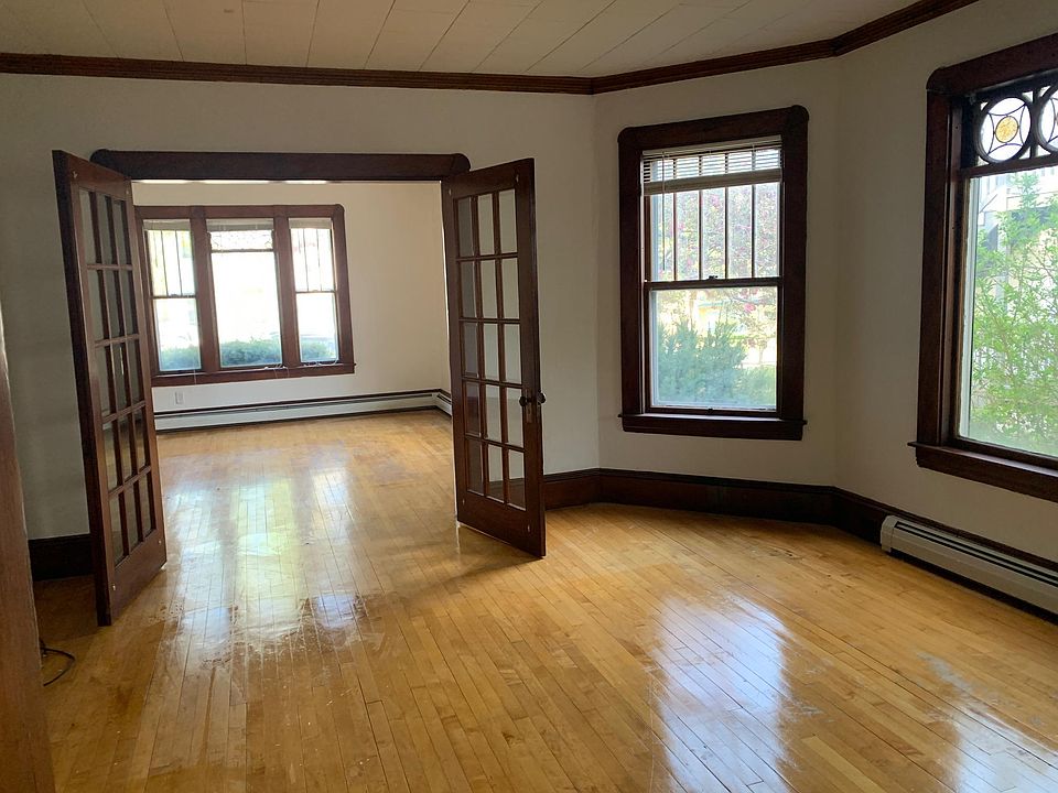 Located in the North End: a spacious, private 1st floor duplex with original hardwood floors and birds-eye maple molding; walk-in closet, Jack-and-Jill bathroom, built-ins, and lots of stained glass. This unit also has a unique walk-in pantry with lots of storage, marble countertop, and original teacup hooks. Kitchen cabinets have a new built-in trash pull-out with both trash and recycling bins included. Back door opens to the unit's private covered porch area with lots of foliage for privacy. Front door entrance is a full-size mudroom [yes- your own private mudroom!] with French doors that open into the front room which can be used as a home office, formal dining room, or an unofficial 3rd bedroom. The kitchen can be an eat-in or have a free-standing island; it's all up to you! Electrical and plumbing have been updated in 2023. Located one block from Elm Street and three minutes off Everett Turnpike; a few minutes walking distance from Rite Aid, a Gas Station, Dunkin Donuts, restaurants, shops and several parks. A 10-minute walk to all the downtown bars and restaurants. A hard-to-find duplex in a quiet neighborhood. Additional 3.5x5 first floor storage for outdoor recreation gear etc. 7x8 storage area in basement and with outlets for chest freezer or other. Cats allowed dogs allowed/negotiable- pet fee negotiable depending on pet and situation. Prefer text/call contact for viewing Unit comes with its own washer and dryer but tenant is responsible for basic upkeep and care of machines as your lease just includes hookups. Small pets as well as cats and dogs are negotiable [no large aquariums] and will come with additional cost non-smoking-smoking on the porch is fine. Off-street parking. Tenant is responsible for electric and heat. 12-month lease.