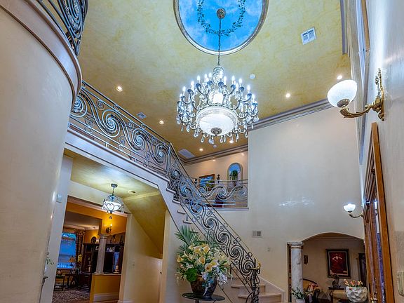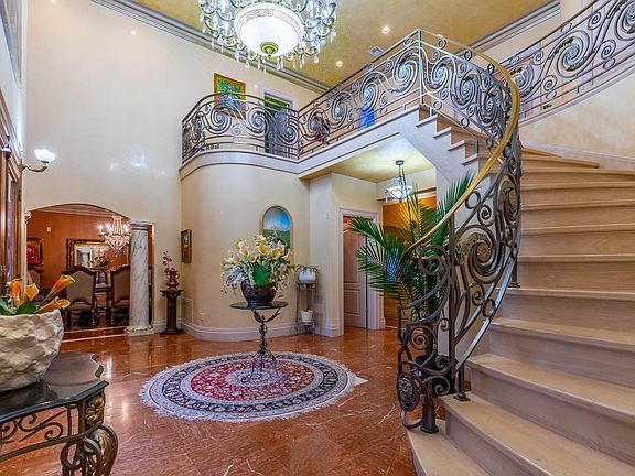 Welcome to this remarkable colonial home boasting 6 bedrooms and 7 baths fully equipped with an in-law/guest suite w/ private entrance sitting on over 18,000 sq feet of lush landscape. As you enter through the large wooden double doors, you're welcomed by a two-story foyer featuring a hand-crafted iron railing along the grand stairway. The foyer leads you into the gourmet kitchen with top of the line, high-end appliances and a granite topped, center island. Enjoy warm summer nights on the terrace that overlooks a luxurious, in-ground heated pool with adjacent hot tub and cabana. The spacious family room is perfect for gatherings of all sizes around the warm fireplace, one of many located in this home. Entering the dining room, you are greeted by two marble columns that add elegance to any occasion. The main stairway leads you to the master bedroom that includes a fireplace, complete sitting area, generous walk-in closet, private balcony and lavish en-suite. This private bathroom includes a jetted tub, steam standing shower as well as a gorgeous skylight perfect for bringing in the morning sunlight. Head down to the finished basement which serves as a recreational area including a billiards table as well as a screening area and dining hall. This home has 8 separate heating zones and central air giving you complete temperature control.