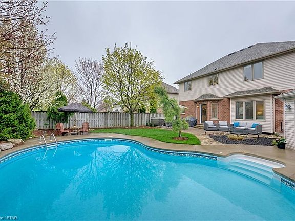 Sought after Hunt Club with an in ground pool! This gorgeous 4 bedroom, 2.5 bath home features a living/dining room combination with hardwood, crown moulding and potlights. Updated gourmet kitchen loaded with ample soft close cabinetry, pot drawers, granite counters and stainless appliances. The open concept family room boasts a fireplace surrounded by built-ins, newer carpet and lovely backyard views. Both mud (built-ins and bench) and powder rooms are updated. Upstairs you will find four generously sized bedrooms featuring hickory floors and plenty of closet space. Master has a walk-in and full ensuite. The fenced backyard oasis is treed, private and features a heated, salt-water pool surrounded by patios, perennial gardens and includes a fire pit and shed. Steps away from Cheltenham Park or walk to river on area trail. Coveted school district, close to the University, local shops, Springbank Park and Masonville Mall. Great family home and neighbourhood. Book your showing today.