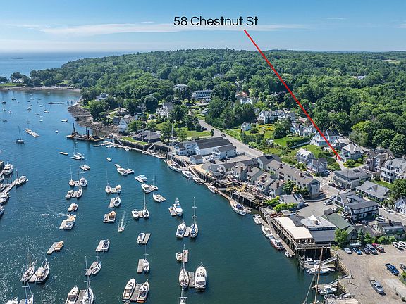 The Chestnut House; ten years young and in the heart of downtown Camden Village, is ready for it's next steward. The finest of craftmanship was reverently custom built into every detail of this outstanding home with harbor and Mt. Battie views. True wood floors, specifically designed windows for sun exposure and bay views with a cook's kitchen opening to the living area with a working fireplace alongside the reading den are complimented by a three bay garage with high ceilings and guest area/bonus room. Decks on both the main and elevated bedroom levels create extra outdoor, south facing spaces. The harborside primary suite has dual closets and an oversized bathroom with a soaking tub. Walk everywhere from this unbelievable offering while enjoying the benefits of purposeful landscaping and hardscaping designed to create a private entity within the village center.
