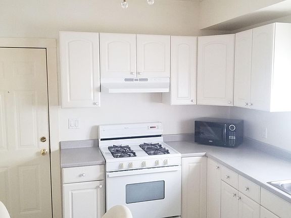Open concept living room and dining room, modern eat-in white kitchen with SS gas range and SS refrigerator, two bedrooms with good closets. One off-street tandem parking space, coin-operated laundry in basement. Shared yard with other tenants One year lease