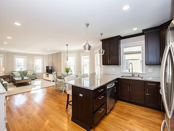 Modern and sun-filled 2 bedroom (plus home office/gym), 1 bath condo in the heart of East Arlington. This well-maintained, open-concept unit, with hardwood floors throughout, has a spacious living and dining area leading to a renovated kitchen with granite countertops and stainless steel appliances (including a gas range for foodies). The unit boasts all modern amenities including central A/C (with Nest thermostat) and in-unit laundry. Topping this off, the renter will enjoy a lush backyard with patio set. The neighborhood is delightful, with many parks and running trails, as well as an array of coffee shops and restaurants -- and the stellar, old-school Capitol Movie Theater -- within a very short walk. Within walking distance of Alewife Station and the Minuteman bike and pedestrian path, and paired with bus access at both ends of the street -- Mass Ave and Broadway -- the unit has stellar transit access. For renters with cars, the unit has two off-street parking spaces (including one garaged space). With the array of options, trips to nearby Davis, Porter, or Harvard Square are effortless. Tufts, Harvard, and MIT are all easily accessible. The owner pays for water/sewer. The renter is responsible for gas and electricity. Last month's rent due at signing but no realtor fee. Pet friendly, but no smoking allowed. 12-month lease preferred.