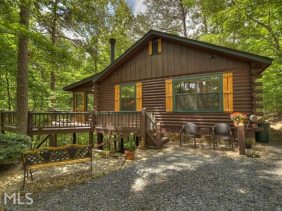 This is the perfect private get-away cabin in the woods. Located in the Cherry Log community convenient to both Blue Ridge and Ellijay. Enjoy an evening on your recently added screened porch. The kitchen has newer stainless steel appliances and is open to the great room with vaulted ceilings and stone wood burning fireplace. There are 2 spacious bedrooms and 1 bath, all rooms with hardwood floors throughout. There is a large side deck, part of which can easily accommodate a raised vegetable garden. The terrace/lower level exterior space has been added with sitting areas to enjoyably view the close by and thickly forested lot. This Chalet-style cabin also comes complete with a Complete Solar Panel and very quiet Solar Battery and Wind Turbine Power-Outage, Back-up System. This Residence also has Granny Lake Access and is situated slightly off a quiet, private dead-end, asphalt paved road. Furniture available under separate bill of sale.