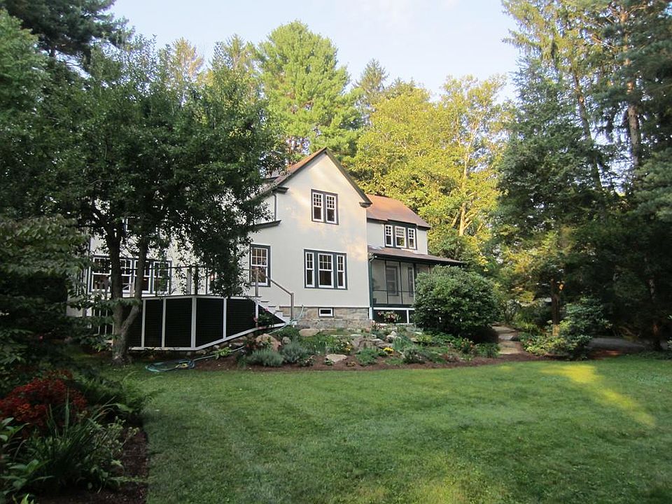 An oasis of serenity on Full Acre of beautiful landscape with unique out-buildings and exquisite privacy is just minutes from train or Pike to Boston. Original house has been updated and enlarged for todays' families with 4/5 bedrooms and four full bath. Open plan filled with stunning views and glorious light, leads to porches, decks and patios blending indoors and out. Charming guest cottage with kitchen and bath, and a separate studio open a wide range of possibilities. This property is a "must see". Come and enjoy!