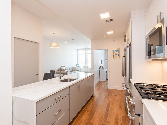 Outstanding top floor unit in this 2018 built boutique luxury building. Step out of the elevator right into your modern, spacious, and sleek home. Western facing floor to ceiling windows light up the open concept living and dining area during afternoon and evenings. Complete with all first-class touches including – a gourmet kitchen with Jenn Air appliances and a Statuario Fantasico waterfall island – two full bathrooms finished with European crafted vanities and tiles – a smart phone controlled Virtual doorman with package room – a NEST thermostat – white oak floors – central air – custom closets – in home washer and dryer – and a quant rooftop deck with an enclosed landing, lounge furniture, BBQ and stunning NJ + NYC views! Presiding in the heart of a thriving cultural center, this home offers all the charm and convivence of downtown Jersey City right at your door. Plus, there are over 5 years left on the builder’s warranty!