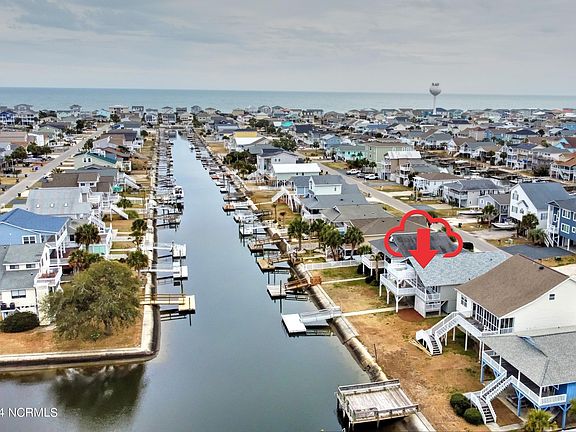 This inviting canal cottage is perfect for those who crave the island way of life with deep water access to the ICW and situated near the hub of OIB activities. The open floor plan presents a casual comfortable living space and offers up a timeless seaside cottage feel. The living room sits under a vaulted ceiling and opens to a large deck overlooking the canal. The kitchen boasts plenty of cabinets along with a cozy breakfast bar and dining area for entertaining. Two sets of bedrooms are on either side of the living area and each set shares a full bathroom. Two of the bedrooms feature views of the canal. An adorable loft on the second floor serves as a perfect sleeping area for the little ones or a gathering place for movies and rainy-day board games. There is plenty of room to relax on the deck or sunbathe on the rooftop deck. There is also a boat dock, outdoor shower, laundry, and plenty of storage room for your beach toys. Located on a beach access street, this home caters to both boaters and beachgoers so come capture the essence of island life in beautiful OIB!