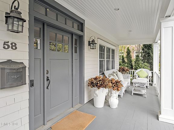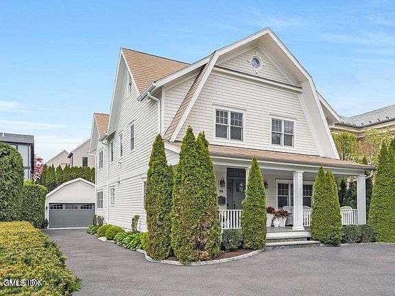 Beautiful, downtown Single Family Home with 4500s/f of living space conveniently located 2 blocks from Greenwich Ave. on one of towns most desirable streets. Featuring a private yard with a screen porch and fireplace - perfect for cozy nights. The open kitchen flows seamlessly into the family room, creating a warm and inviting space for gatherings. 4 bedrooms on the second floor make this special home stand apart from the more common vertical homes downtown. The primary bedroom has a large loft area that can be used for a gym or office space, or storage. The real gem is the full finished lower level with living room complete with mini bar, 5th bedroom with full bath and ample storage. This home has been lovingly cared for and maintained with updated systems. The mature landscaping brings a bounty of foliage. Everything you want while being close to Greenwich Ave restaurants, shopping, train, library and schools.