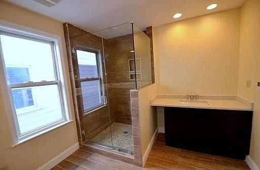 Located in Boston's "Moreland Historic District," this renovated 2 bedroom, 2 bath apartment boasts hardwood floors throughout, recessed LED lighting with dimmers, white quartz counter tops, stainless steel appliances, full-sized in-unit washer and dryer, heated floors in the kitchen and a bathroom, ice maker in newer refrigerator, new trendy wide window oven, and griddle on range-top, under-mount black quartz sink, on demanded tank-less hot water heater, large bathroom with Jacuzzi Tub, custom glass enclosed shower featuring unique tile and stone work, and luxury shower heads. Also boasting a newly installed H-VAC system, heating and cooling are on demand, and connected to your new Nest controlled system. Spacious private rear deck, great for outdoor enjoyment. A great bonus Gertrude Howes Playground a short distance down the street, great for gatherings, picnics etc.
