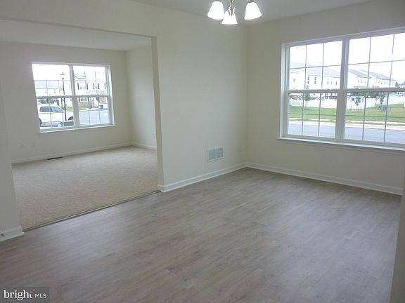 Quick delivery new construction three bedrooms, two and half baths end unit townhome constructed by award winning Lenape Builders is now available. Your new home is located in beautiful Cambria Village with open spaces, and sidewalks. It is in the growing town of Smyrna, with nearby amenities like Lake Como, Garrison Lake, Big Oak Park, tax free shopping, restaurants and historic Main Street. The home has great curb appeal with partial brick front. Stepping through the front door is a nice size foyer with coat closet, luxury vinyl plank floor and a powder room. The kitchen is at the front of the home with luxury vinyl plank floor and a breakfast area. There are soft close cabinets, granite countertops and black appliances. There is a convenient pass through window to the dining room that has a granite ledge. The large living room goes across the back of the entire home and has a slider to the deck. The spacious owner’s suite is on the front of the home. The owner’s bath has double sinks, light color vanity and tub/shower. All three bedrooms have wiring for future ceiling fans or overhead lights. There is a hall bath and a linen closet in the upstairs hallway. Since this is an end unit there are extra windows on the side of the home, letting in additional natural light. The basement has an egress window and is ready for your plans whether for storage or finishing into additional living space. There is also a central vacuum system. Don’t miss out book your tour today!