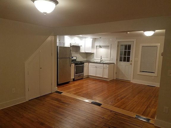 One bedroom first floor apartment. Recent renovation. Modern unit with beautiful rustic touches. Open kitchen/dining/living room. Gas cooking. Private full size laundry in full bath. Original wood floors refinished. Ample off street private parking. Large yard. Sunny front porch and private back deck. Great location for all points of travel. Walk to center. Close to Ski Sundown and Farmington River. No smoking. Pets considered, fee applies. Efficient unit with oil warm air heating. Includes city water service, cooking gas, property maintenance (snow removal, trash, etc.) Tenant responsible for heating oil, electric, any desired cable/internet. First month and 2 mos security due at signing. Unit is currently occupied, pictures of unit are unoccupied. 1 year lease. 2 mos. security. Pets considered. 60 days notice to terminate lease. No smoking. See description for included utilities/services.