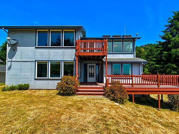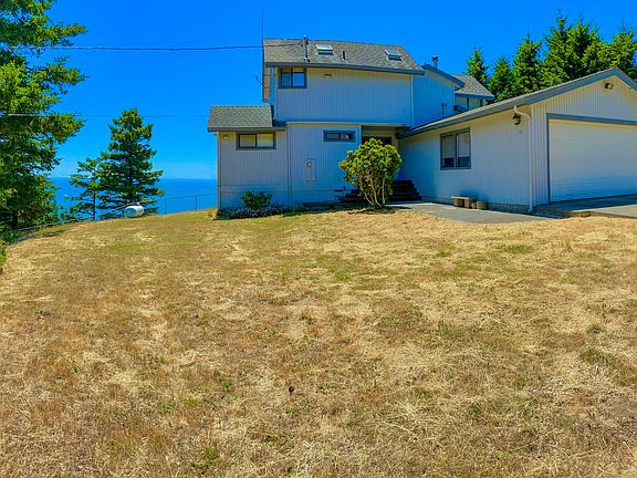 Gorgeous Shelter Cove home on half-acre overlooking the Pacific Ocean. Ocean views captured with over 30 windows throughout the home. Approximately 1996 square feet house on three lots. Home features a large entertaining kitchen, dining area, master bedroom, guest bedroom, den, 2.5 bathrooms, living room, formal entry, laundry area, pantry and open-concept. Large fenced yard perched above the ocean. Located on a private cul-de-sac with gated entry. Plenty of parking for a boat, vehicles, and toys with this oversized 2 car garage equipped with rafters. Wood burning stove plus radiant boiler heating system circulating hot water in three zones through baseboard heaters. Selling ''as is'' per inspections attached. A must see!