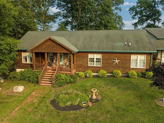 Built in 2008 this cedar log sided modular home features a 38 handle kitchen and an additional 18 handle wall in the dining room area. The basement has a drive up garage door entrance height top of the line water treatment system and on demand hot water. 200 amp electric and generator for the entire home as well as frost free hose connections on every side of the house and garage, and a 45 year year roof. The garage is a must have for anyone who has hot rods, antique cars, boats, campers, motorcycles, race cars..Climate controlled with radiant floor heat and central air, the building is 44 x 44 x 16 with two - 12 x 14 insulated steel backer overhead doors and one -9 x 8 overhead door, an 8 x 8 paint room, storage loft and powder room. The garage has a seperate 200 amp service with 2 - 3 phase converter outlets. 1- 40 amp 3 phase and 1 -15 amp. 3 phase, there are 4 - 50 amp single phase receptacles,a piston style 7.5 horsepower air compressor with air hoses on each wall.