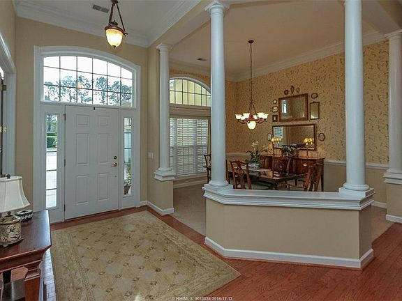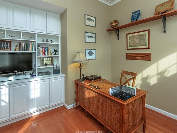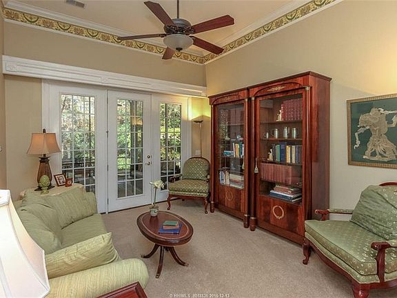 This totally private setting at the end of a cul-de-sac with huge screened porch, terraced backyard and sunken pergola overlooking charming woodland stream offer the best in SC living. A pristine home with 12' ceilings, office and great room with beautiful builtins, hardwood floors, gas fireplace in the great room set this home apart. Large first floor master suite and master bath with natural light, jetted tub and separate shower. Light and bright open kitchen with gas cooktop. Conveniently located community with pool, tennis and outstanding golf course with low POA fees.