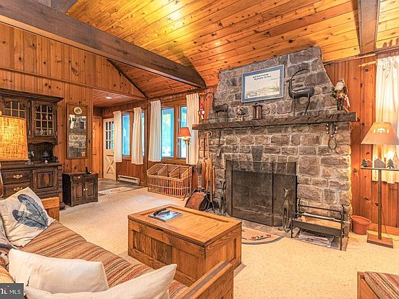 Fabulous lakeview vacation home just one block from Lake Harmony! Check out the gorgeous clapboard siding, 1-car garage, & oversized 5+ car parking! The slate foyer opens to the spectacular great room, complete with cathedral vaulted ceilings, floor-to-ceiling stone fireplace, knotted pine ceilings, and solid wood paneling. The expansive living room has sliders to huge deck overlooking pristine Lake Harmony! The sundrenched kitchen has granite countertops & island, tumbled stone backsplash, Pergo flooring, recessed lighting, and gorgeous original wood cabinets! The bright dining room has Pergo flooring, recessed lights, & second set of sliders that lead to the balcony , with built -in fire pit & awe-inspiring lakeviews. The renovated main floor bathroom has stone shower with granite seat & granite trim, rain showerhead, granite sink, recessed lighting, and oi-rubbed bronze fixtures. The 4 bedrooms are spacious , with plush carpeting, real wood panels, casement windows, and large closets. The finished walk-out basement has a huge media/game room , guest bedroom, & stunning remodeled bathroom with granite countertops, sleek white cabinetry, ceramic tile floors, & recessed lighting. Great investment that can sleep 10-12. Amenities include Indoor Waterpark, Redemption Arcade, Cosmic Bowling, & Movie Theater. Enjoy Jack Frost/Big Boulder ski resort as well as plenty of restaurants like Shenanigans, Boulder View Tavern, Nick's Lake House, Piggy's, Louie's Prime...the list is endless! Washer, dryer, fridge, pool table, & most furniture negotiable.