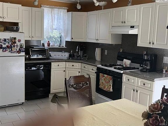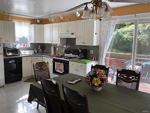 Cozy 3 bedroom home on quiet dead end street. Walk up to a lovely front Slate Patio w/wrought iron railings .Entrance/Foyer ,Living room w/ Fireplace, Hardwood floors. Large updated tiled Eat-in kitchen w/ sliding glass doors to cement patio and yard. 2nd floor/Master bedroom, 2 additional bedrooms, hardwood floors and Hall Bath. Basement /Finished (laminate wood floors to be installed).