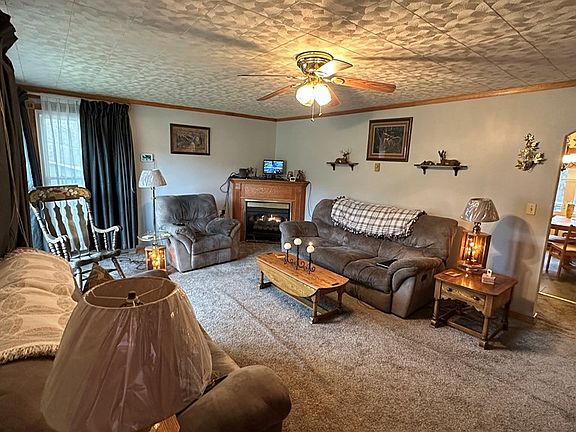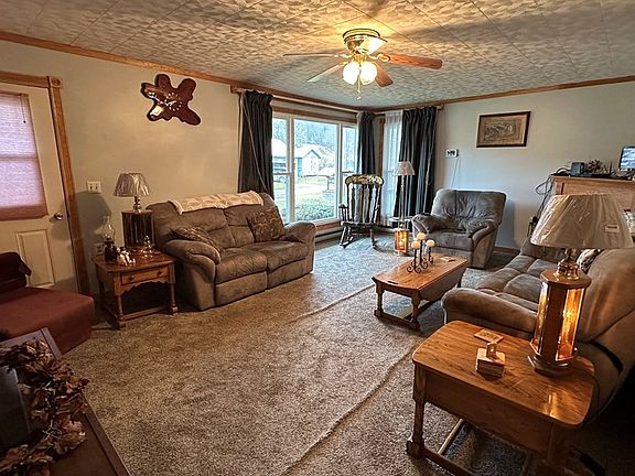 Discover your picturesque ranch retreat on 37 acres of serene countryside, where tranquility meets luxury living. This stunning home offers an unparalleled blend of natural beauty and modern comfort. The spacious interior boasts a flowing floorplan, cozy fireplace, and panoramic windows framing breathtaking views. The kitchen features eat in dining area. Four bedrooms can all be found on the main level Additional highlights include a full bar room in the basement with included pool table, space for a home office, and a large rec room. Step outside to explore sprawling acres of land, ideal for nature walks and large picnics. Animal and farm enthusiasts will appreciate the well-appointed barns and fields. Embrace the rhythm of rural life as you tend to your garden or bask in the serenity of your private oasis from the enclosed hottub gazebo. Experience country living at its finest in this quaint ranch. Seize this opportunity to own a bit of paradise where every day feels like a getaway.