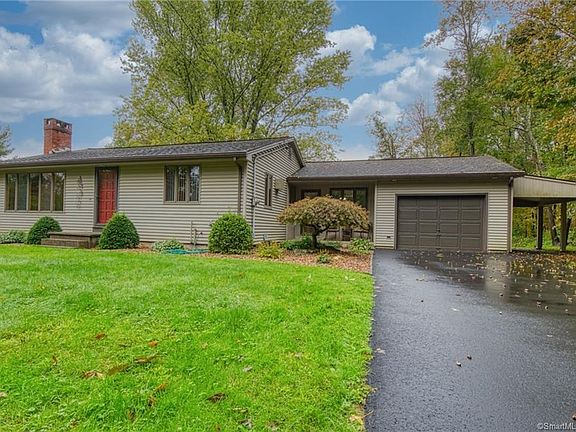 Multiple offers received. Best and Final offers due by Saturday, 10/9, at 7pm. Welcome Home This beautiful, well-maintained 2 bedroom Ranch is nestled in a quiet neighborhood on 1.09 acres. The secluded backyard offers privacy and plenty of space to create your own personal oasis. This home has been updated with beautiful hardwood floors throughout the living spaces. Spacious bedrooms include wall-unit A/C and closets. An updated kitchen features stainless steel appliances, new cabinets, double oven and island with seating. The living room has recessed lighting above fireplace with natural light from a large picture window. Fully renovated bathroom. Sliding doors in the dining room offer a gorgeous view of the backyard and deck. Heated garage to keep your car warm and toasty for those chilly, New England mornings. Plenty of storage space in attic, unfinished basement and sheds. Move-in ready