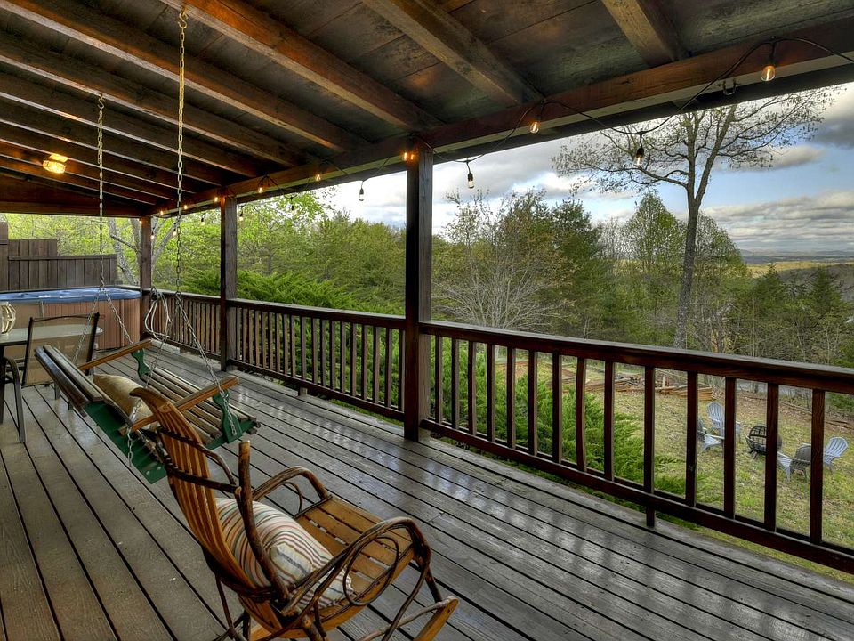 Romantic Mountain Retreat nestled in the MOST PERFECT LOCATION, ALL PAVED Access, CITY WATER & High Speed Internet with a WORLD CLASS Mountain LONG Range VIEW. Fully Furnished (Beautiful Rustic Log & Leather Furniture & Flat Screen TV's) w/Substantial Rental History.REAL LOG Cabin (Log Siding on Upper Level only). Spacious All Wood Great Rm w/Impressive Wood Burning Dry Stack Stone Fireplace. Several Drywall Accent Walls, Hand-Painted Custom Window Valances, Efficient Kitchen w/Black Appliances. Main Level Bedrm offers direct access to Hot Tub Porch w/Swing, Dual Vanity Marble Top in Main Level Bath, OPEN LOFT/Library Suite w/Upper Level Bdrm & Full Bath. Level Front Yard w/Firepit & Easy Access w/Circular Driveway. Mature Landscaping. So close & centrally located to Merciers Orchard, Downtown Blue Ridge, McCaysville & the Hospital.