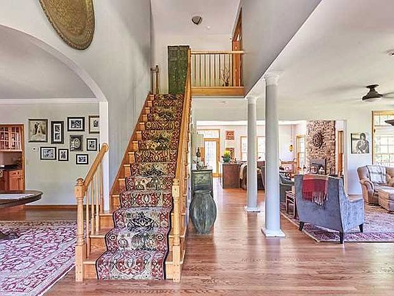 A truly private retreat in peaceful Upper Red Hook, this generously-sized home sits at the end of a handsome approach. Enjoy over 3600 sf of open & airy living space with many upgrades like a new modern kitchen and master suite. There are two open sitting areas on the main floor as well as a formal dining room, office, butler's pantry & half bath. Upstairs you'll find the large master suite, a gorgeous full bathroom with glass-walled shower and soaking tub, three additional bedrooms, plus an oversized game/media room. The 9 dug-out poured concrete basement has plenty of room for storage, a large gym area & up-to-date mechanicals. The covered porch and deck lead to the stone patio where you'll find the glorious waterfall pool, as well as a built-in stone fire pit area for outdoor enjoyment. The property is fully fenced and surrounded by perennial gardens and mature landscaping with a separate fenced vegetable garden. So much to enjoy! Nearly 3.5 acres, AC and security system in place. Under 2 hrs from NYC.