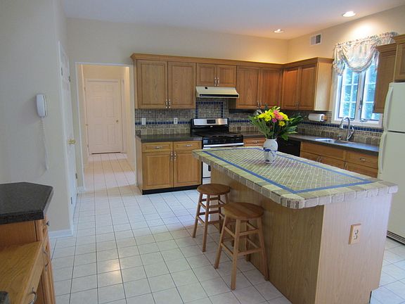 Gorgeous home, light and bright with an open floor plan set on a beautiful lot within walking distance of NYC train and town lake. Two story foyer, bedroom/office on first floor. Large island kitchen with oversized eat-in area with sliders to the expansive deck. Formal living and dining rooms with hardwood floors and matching bay windows. Luxurious master suite with twin walk-in closets and master bath with shower, soaking tub and separate vanities. Family room adjacent to kitchen, with wood burning fireplace, and recreation room in basement are entertainment ready and wired for surround sound. Spacious 3 car garage, plenty of closets throughout and walk-out mud/laundry room add to the conveniences. Easy access to major shopping and Rts 78, 22 and 287.