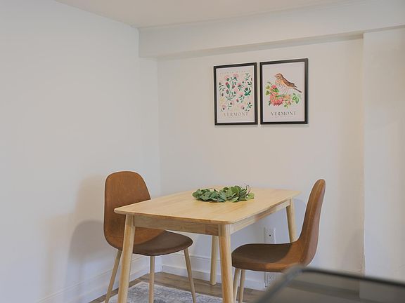 This is the bottom floor unit of a 1900's triplex home. It offers 1 queen bed /1 bath, 1 front porch with plenty of storage to lock up bikes and store some personal belongings. Please note, the ceiling height is 6'2, as its an older building. We've curated the space to feel warm and cozy, by offering soft bedding, warm lighting, personal Vermont touches through artwork, plants, and a VT guidebook. Fully stocked kitchen, new appliances and new furniture. The closest laundry-mat is 6 min drive, as the premise does not have laundry. A 5-10 min walk to downtown Winooski where you will find great coffee shops, restaurants, shopping and bars. Some of the best restaurants in town are located here. Very close to UVM Hospital as well as the other surrounding colleges - making this apartment very centrally located. Please note- this is being rented fully furnished. Owner pays for all utilities (water, trash / recycling, gas, electric, internet). Last months rent due at signing as well as non-refundable cleaning fee $200. Parking is street parking only. No animals permitted, this is a month to month lease.