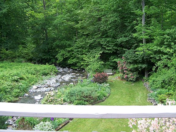 This unique 2 BD, 2 BA architect-designed Contemporary overlooks a mountain stream, landscaped gardens, on 12+ acres. Filled with light, living room/dining room/kitchen areas are set in an open octagonal wing featuring a central fireplace & wood stove, w/skylights & sliders to large cedar deck. Set in the woods, close to Berkshire East & white-water rafting, you’re also convenient to Rte. 2. Mostly furnished, including cookware, furniture, garden tools, lawn mower, snow blower, wd stove, & more.