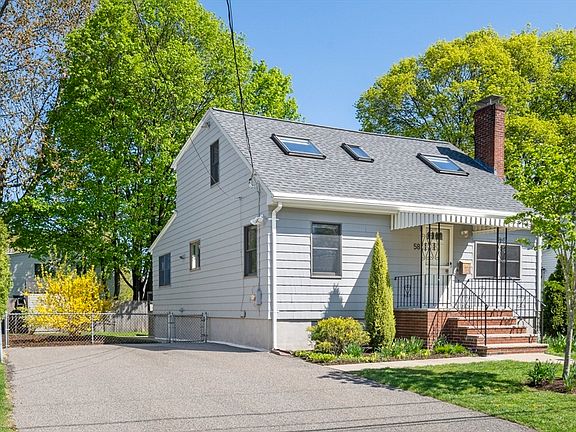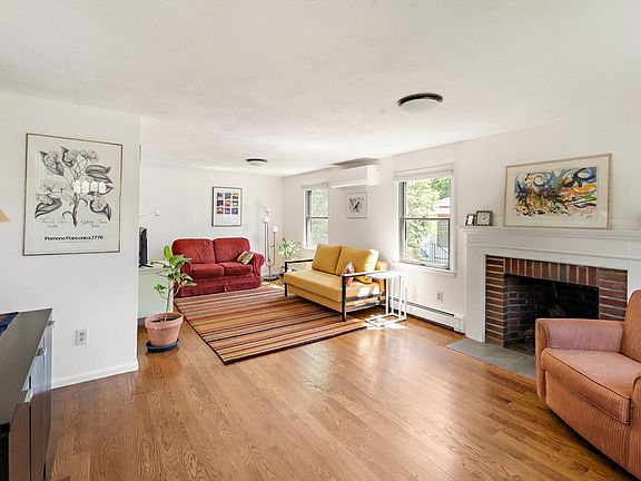 Very sunny Cape in Watertown’s sought-after West End. Set on a one-way street adjacent to the historical Gore Estate, this impeccably-maintained home blends classic New England character with thoughtful updates for modern living. The front-to-back living room features a cozy fireplace, hardwood floors and a mini-duct AC system for year-round comfort. Hardwood floors continue into the dining room and hallway, enhancing the warm and inviting atmosphere. The first floor also offers a generously sized bedroom and an updated full bath. The spacious & contemporary eat-in kitchen features ample windows and a direct connection to the yard. Upstairs includes two skylit- bedrooms and a renovated modern full bath. The partially-finished basement adds flexible space for kids, hobbies & storage. Exterior highlights: freshly painted (2020), front roof (2016), back roof (2022), lovely landscaping & double-wide driveway.